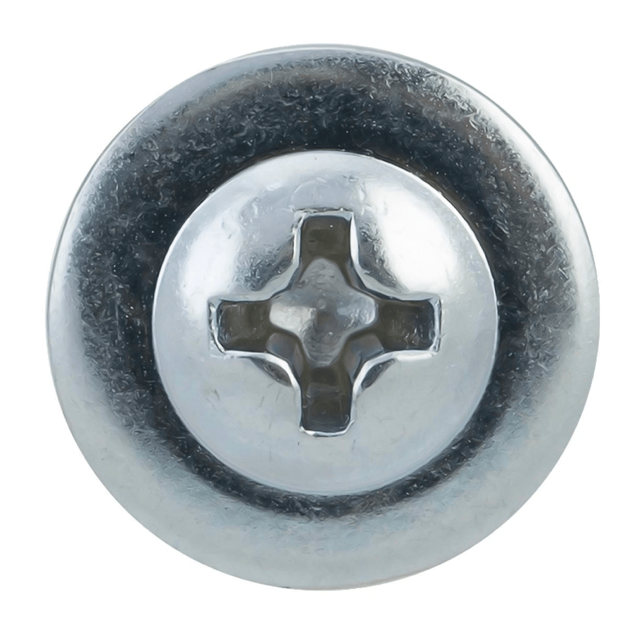 Саморез с прессшайбой и сверловидным наконечником, шляпка самореза выполнена в виде полукруглой головки на которую напрессована плоская шайба.