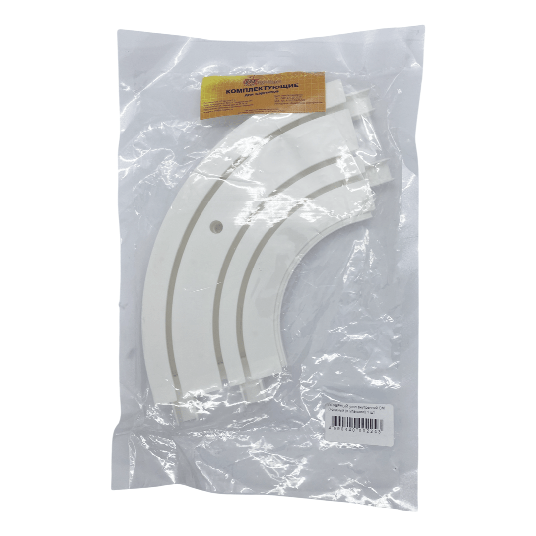 Соединитель угловой трёхрядный внутренний является готовым решением для карнизов с пластиковой шиной.