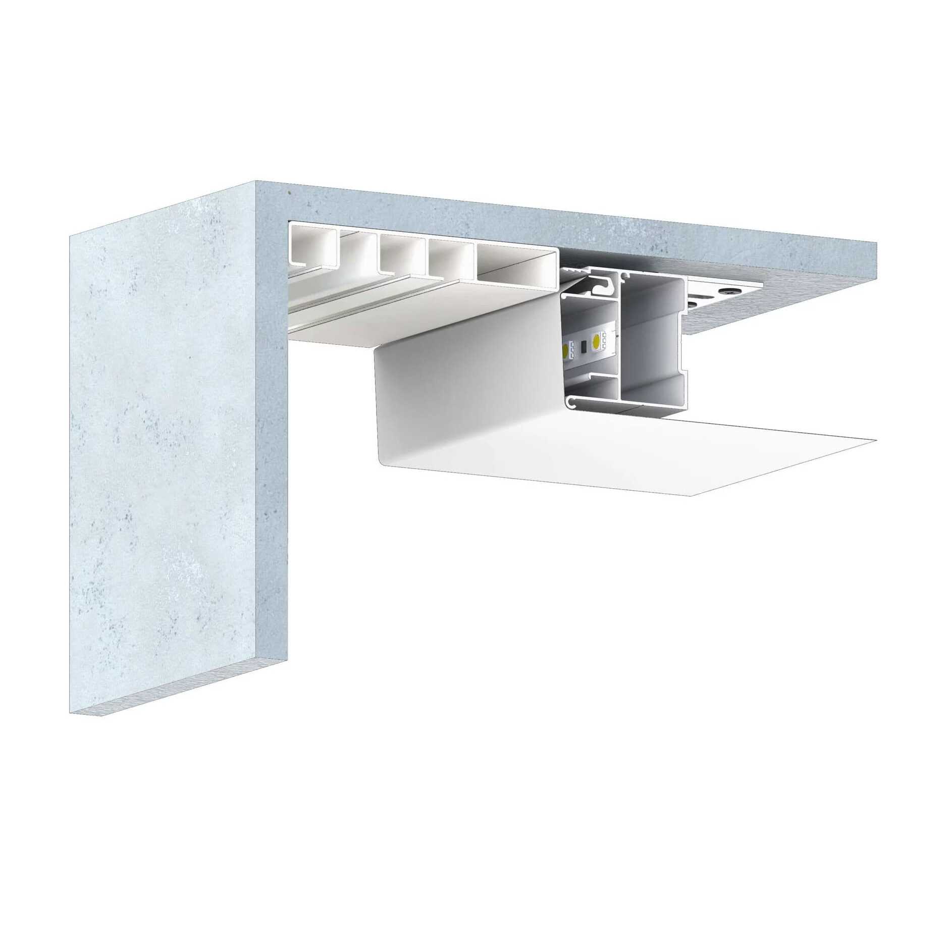 Профиль Flexy BRUS 01 предназначен для натяжных потолков с гарпунной системой крепления полотна. Этот профиль используется для создания различных конструкций, ниш и обхода сложных архитектурных элементов. Отличительной особенностью Flexy BRUS 01 является наличие полки для установки светодиодной ленты, что позволяет интегрировать подсветку непосредственно в конструкцию потолка, создавая дополнительные световые эффекты.