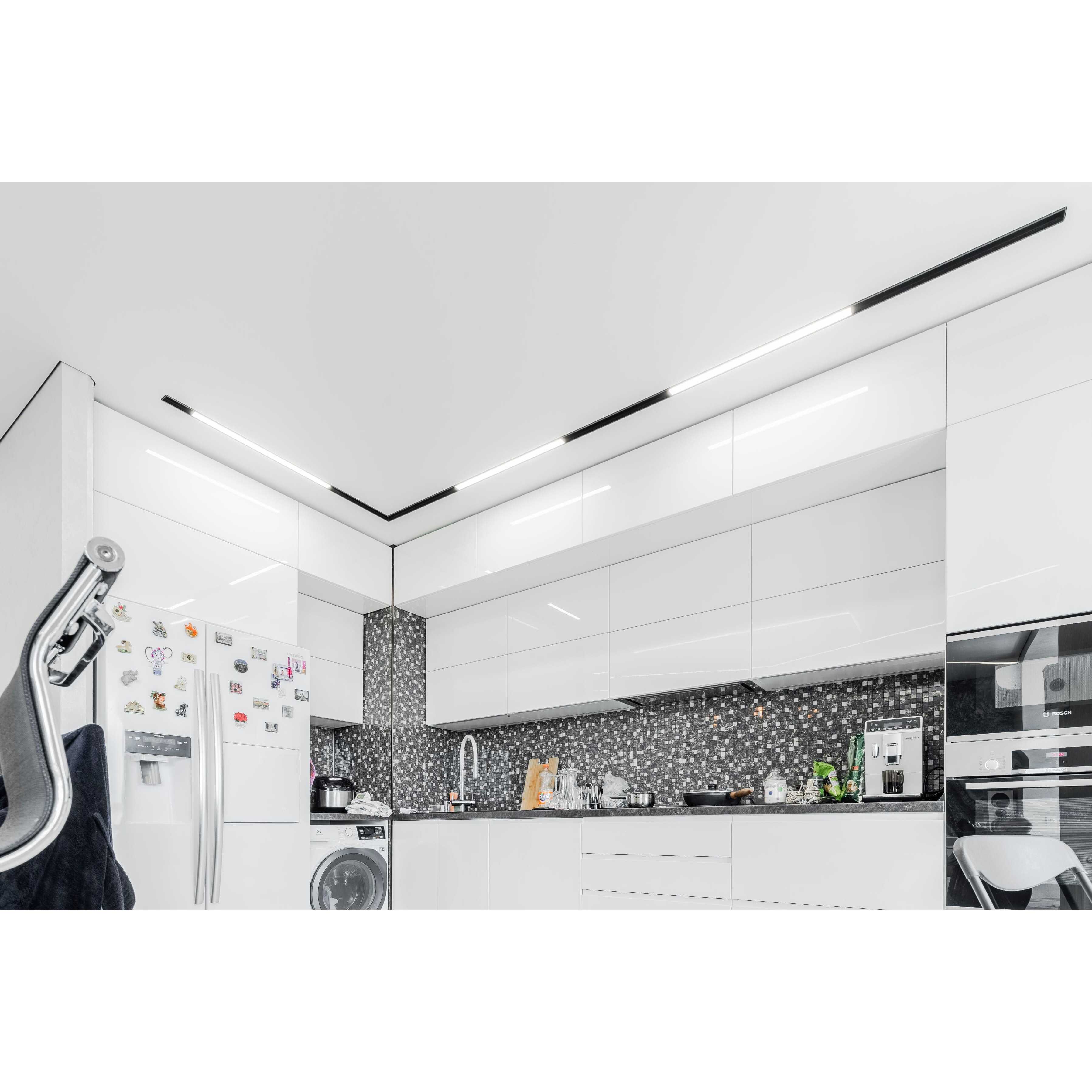 - полная интеграция в конструкцию натяжного потолка без зазоров и щелей
